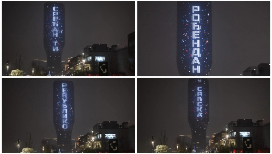 Poruka "Srećan ti rođendan Republiko Srpska" ispisana je velikim slovima na Kuli Beograd. Ovim povodom oglasio se i predsednik Srbije Aleksandar Vučić.