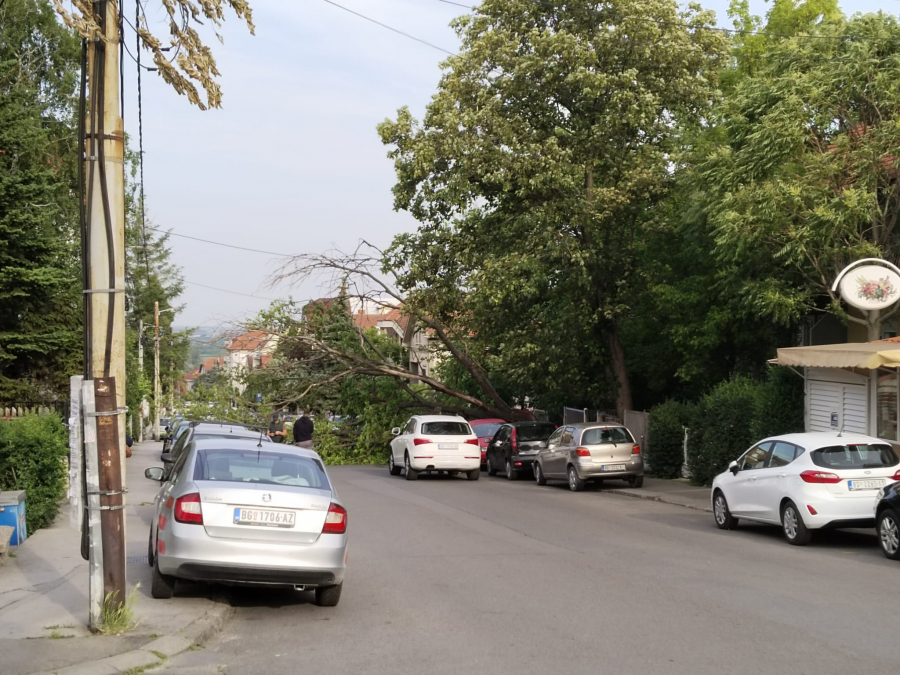 U ulici braće Vučković, u naselju Bele vode na Čukarici u toku noći je palo drvo na mesto gde su parkirani automobili.