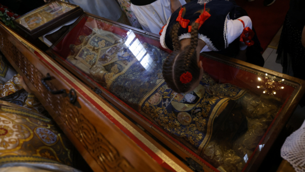 “U našem hramu nalaze se mošti Svetog Ave Justina Ćelijskog i čudotvorna ikona Bogorodice Znamenje koji su svečano dočekani sinoć. Narod ih celiva od ranih jutarnjih sati”, rekao je za Tanjug protojerej Vaznesenjske crkve.