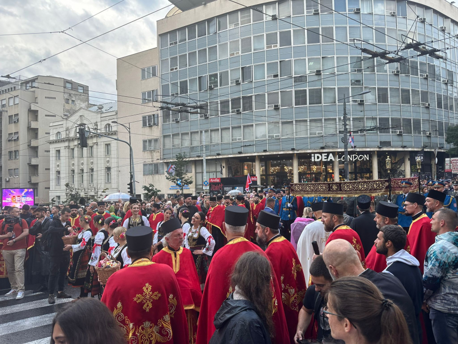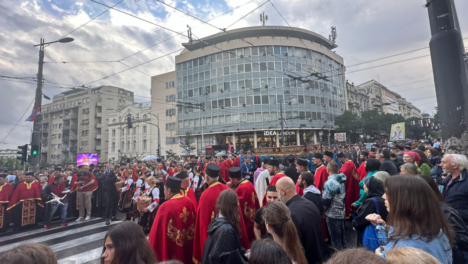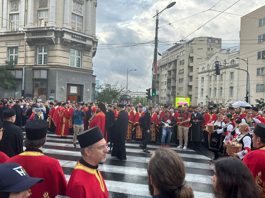 Uprkos lošem vremenu, Spasovdanska litija u Beogradu okupila je veliki broj učesnika.