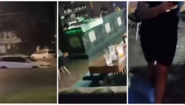 Na Autokomandi je poplavljen jedan noćni klub, na snimku se može videti omladina koja u vodi do listova pokušava da izađe napolje, a nova količina vode se sliva niz stepenice.