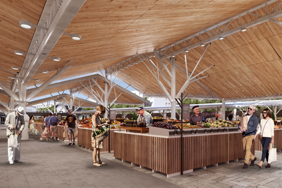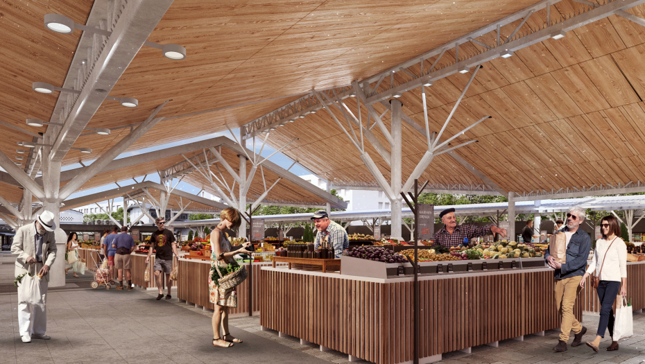 Prva celina obuhvataće najveći deo pijace sa 510 tezgi, četiri pjacete sa česmama i klupama, i biće natkrivena nadstrešnicom, a druga će se fokusirati na gastronomske objekte, uključujući prodaju prehrambenih proizvoda i pripremu gotove hrane.