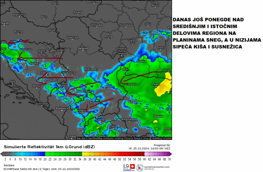 Narednih dana uglavnom suvo ali često tmurno I maglovito. Slab sneg ponege danas i na istoku regiona možda u petak. Za doček 2025. suvo i hladno uz slab do umeren mraz, dok će početak 2025. godine doneti otopljenje. Novo zahlađenje je moguće posle 4. januara, ali kada je ono u pitanju trenutno je suviše varijabila za bila kakvu konkretnu prognozu