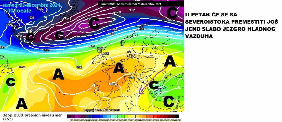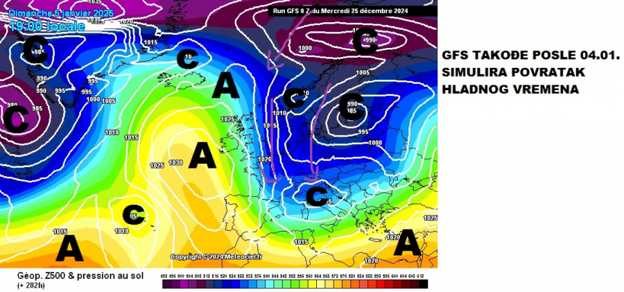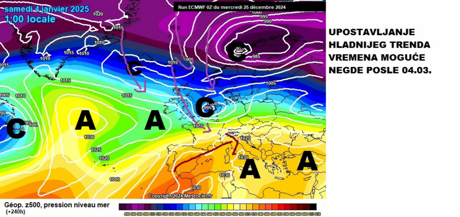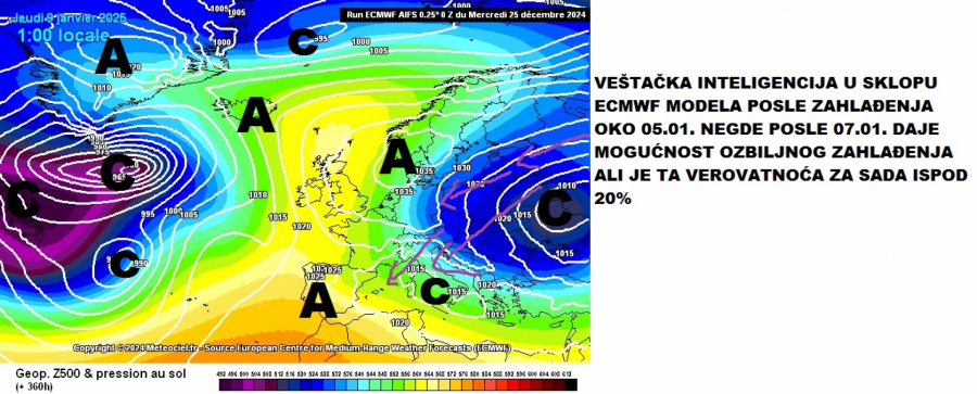Izmena sinoptike koja bi vodila ka novom zahlađenju je moguća negde oko 04.01.2025.