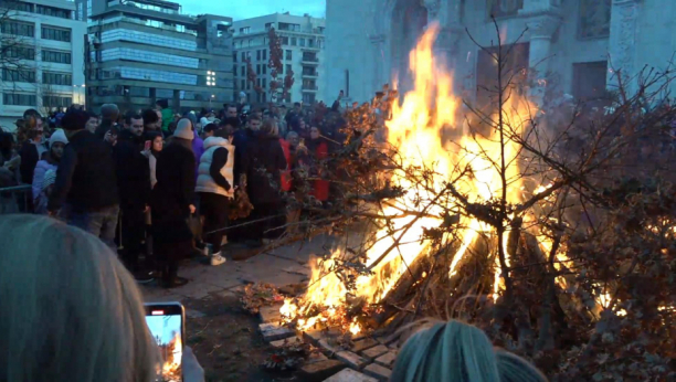POGLEDAJTE KAKO JE IZGLEDALO PALJENJE BADNJAKA ISPRED HRAMA: Obeleženo Badnje veče (VIDEO)