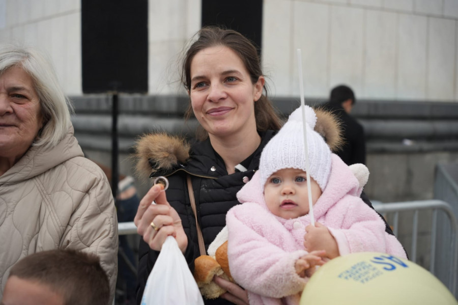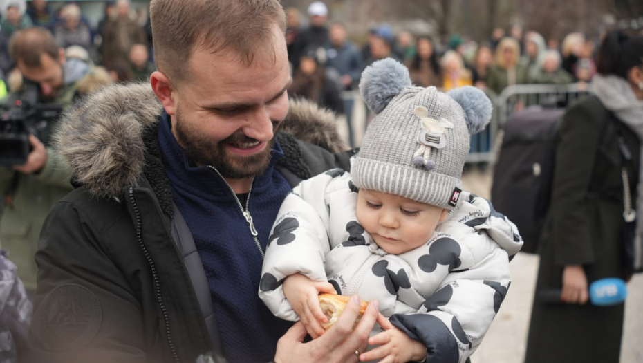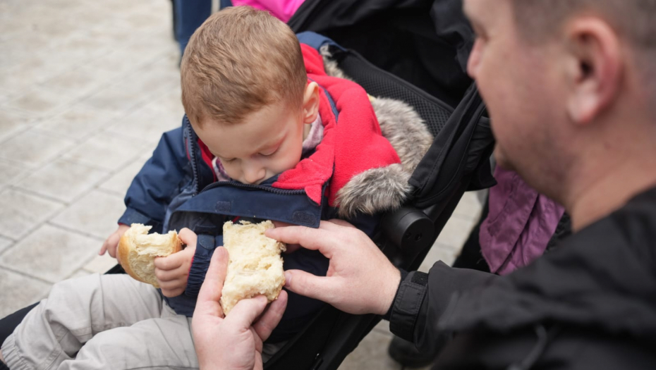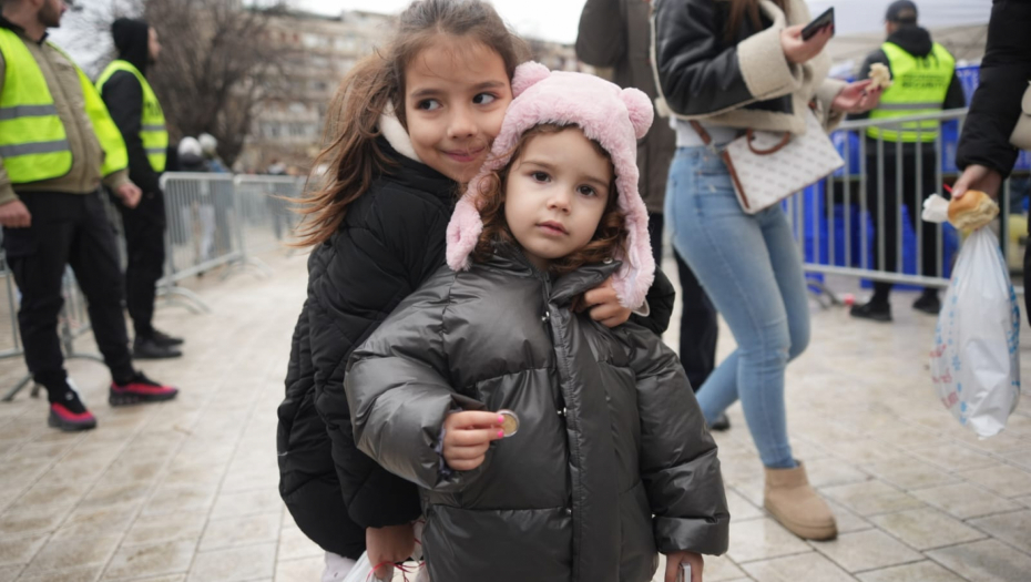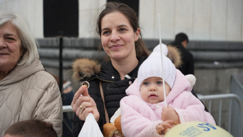 Pored porodice Blagovčanin novčić su izvukli i mnogi drugi građani okupljeni ispred Hrama Svetog Save.