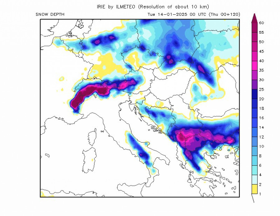 U nedelju,12. januara ciklon u Jonskom moru doneće puno snega Makedoniji a kasnije Crnoj Gori i jugozapadu, jugu i jugoistoku Srbije.