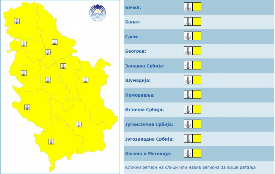 Zbog ekstremno niskih temperatura, u celoj zemlji je na snazi žuti meteoalarm.