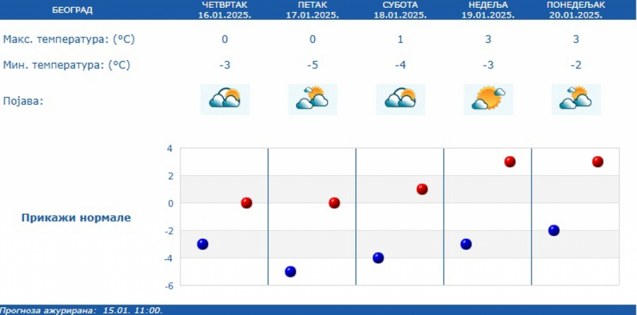 U nastavku druge dekade januara u nižim predelima jutra hladna i mestimično maglovita, a magla i niska oblačnost mestimično će se zadržavati i duže tokom dana.