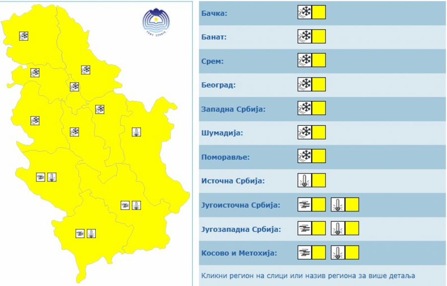Za sutrašnji dan, na snazi je žuti meteoalarm u celoj Srbiji, usled snega, leda, magle i niskih temperatura.