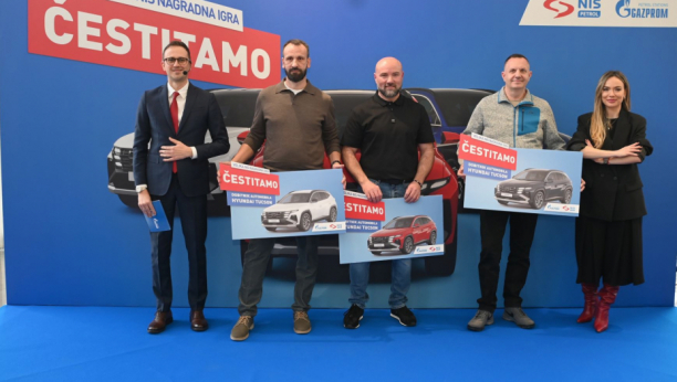 Glavne nagrade, tri automobila Hyundai Tucson, dodeljene su danas srećnim dobitnicima, u okviru velike NIS nagradne igre NIS Petrol i Gasprom benzinskih stanica realizovane krajem prošle godine.