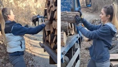 Na društvenim mrežama pojavio se video-snimak mlade devojke Sanje koja u šumi ređa drva u čuveni "Tam" kamion.