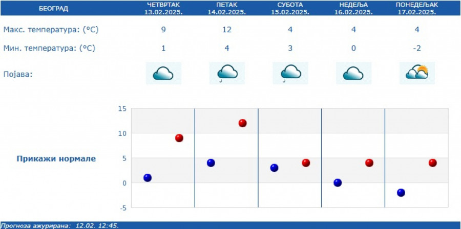 Što se tiče izgleda vremena u Srbiji za narednih sedam dana, očekuje se umereno do potpuno oblačno vreme.