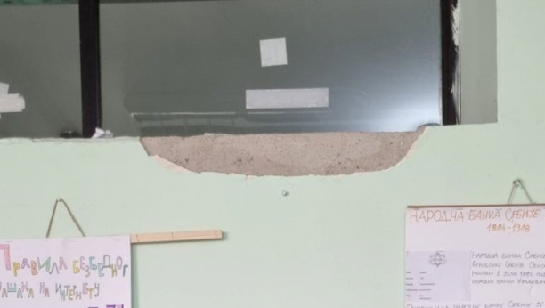 Alo! je došao u posed fotografije oštećenog maltera na zidu učionice u Pećincima koji je otpao.