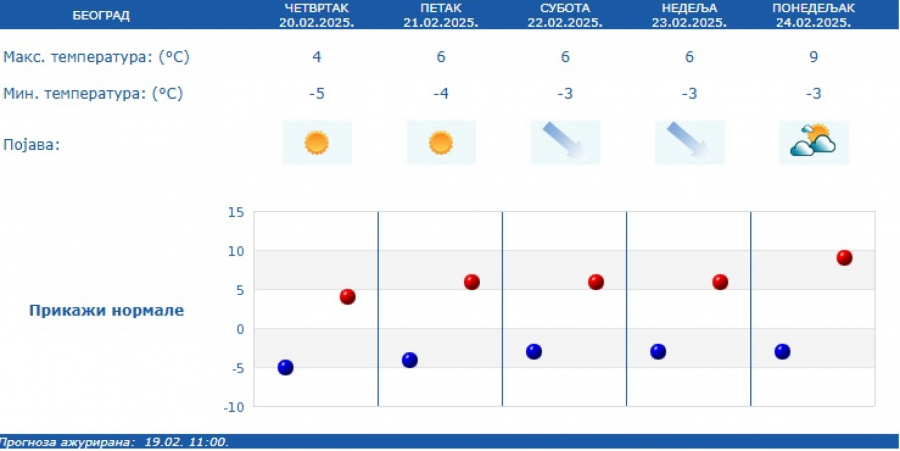 Maksimalna temperatura u petak biće od 2 do 6 stepeni, a za vikend i do 8 stepeni, samo će se u Timočkoj Krajini zadržati hladnije vreme.