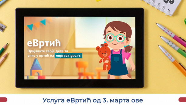 Podsećamo roditelje da u svojim mestima prate kada je konkurs za upis dece u vrtiće otvoren kako bi mogli elektronski da podnesu zahtev za upis deteta u predškolsku ustanovu. U prethodnih 8 godina, od kada je usluga eVrtić dostupna na Portalu eUprava, ova usluga je korišćena oko 425.000 puta.