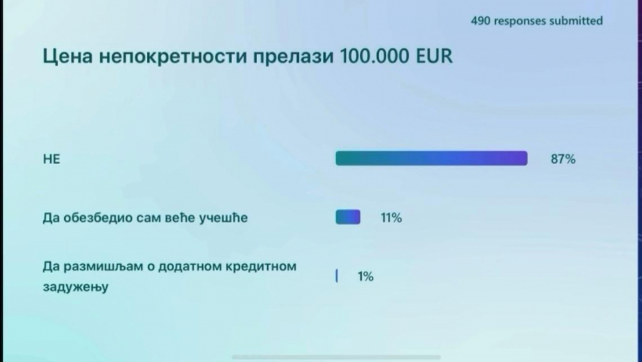 U 87 odsto slučajeva cena nekretnine ne prelazi 100.000 evra, dok procentualno svega dva odsto manje podnosilaca želi da se zaduži zbog stana (85%), dok bi kuću želelo znatno manje njih.