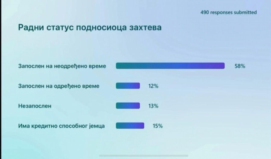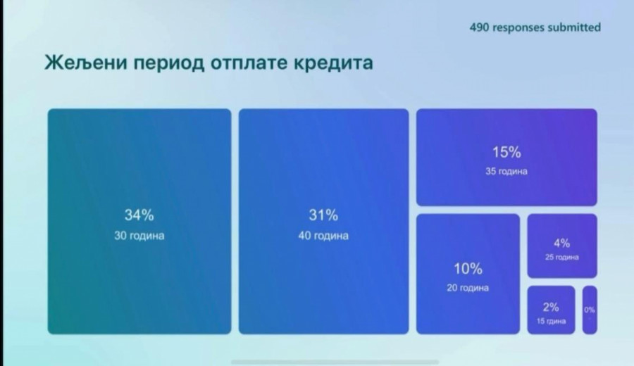 Što se perioda otplate tiče, pri vrhu liste su rok od 30 godina (34% zahteva) i od 40 godina (31% zahteva).