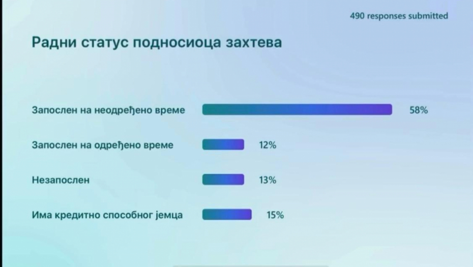 Više od polovine zainteresovanih je zaposleno na neodređeno vreme, tačnijenjih 58%, a ostatak onih koji žele da učestvuju u programu izgleda ovako: