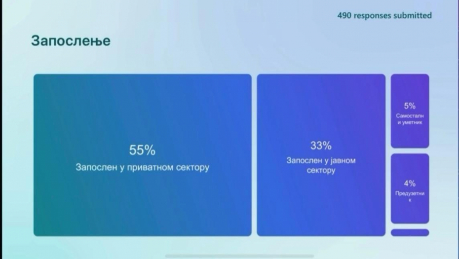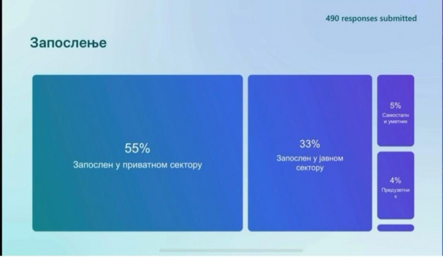 Ako se baci pogled na vrstu zaposlenja, 55% njih radi u privatnom, a 33% u javnom sektoru.