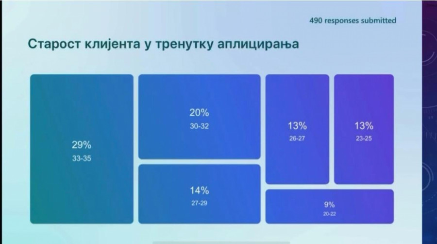 Najviše budućih stanara je staro od 33 do 35 godina (29%), slede oni između 30 i 32 godine, a nije zanemarljiv ni procenat onih koji su tek ušli u treću deceniju života (9%). Samo dva odsto mladih je između 20 i 22 godine.