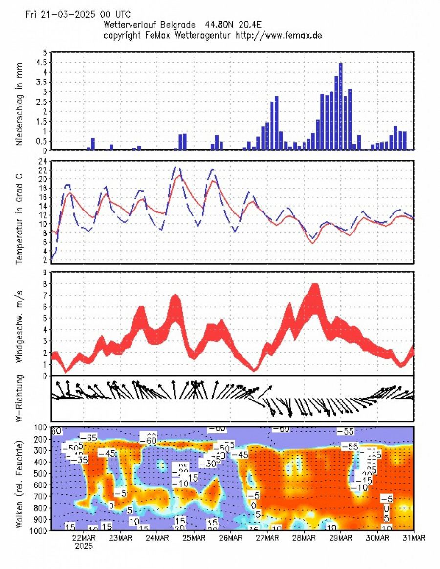 - Vetar slab i umeren, u planinskim predelima, na jugu Banata i donjem Podunavlјu povremeno i jak, južni i jugoistočni. Najviša temperatura od 15 do 20 stepeni - dodaju iz RHMZ.