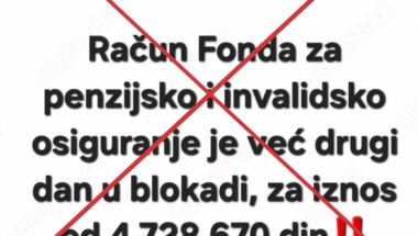 Povodom informacije koja se pojavila na društvenim mrežama, obaveštavamo javnost da račun Republičkog fonda za penzijsko i invalidsko osiguranje nije u blokadi, niti je ikada bio blokiran. Naprotiv.