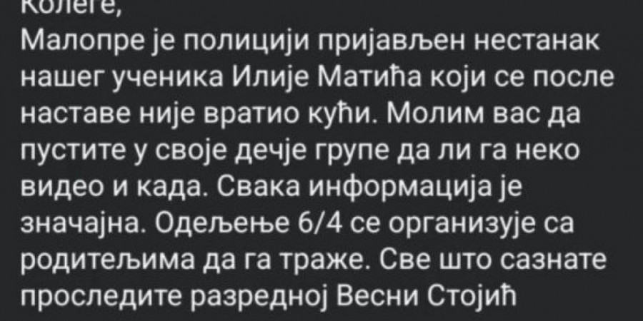 Ukoliko imate bilo kakve informacije u vezi nestanka dečaka, prijavite Ministarstvu unutrašnjih poslova.