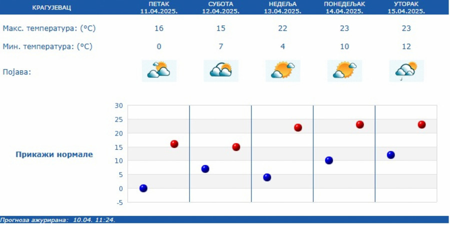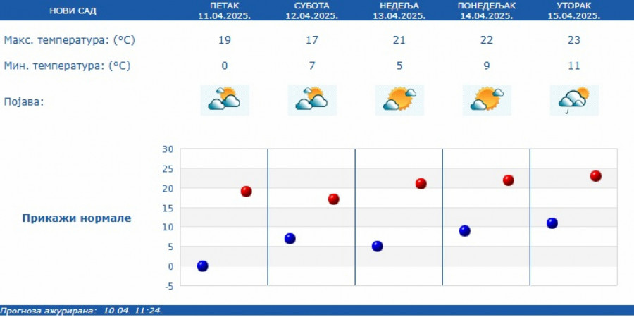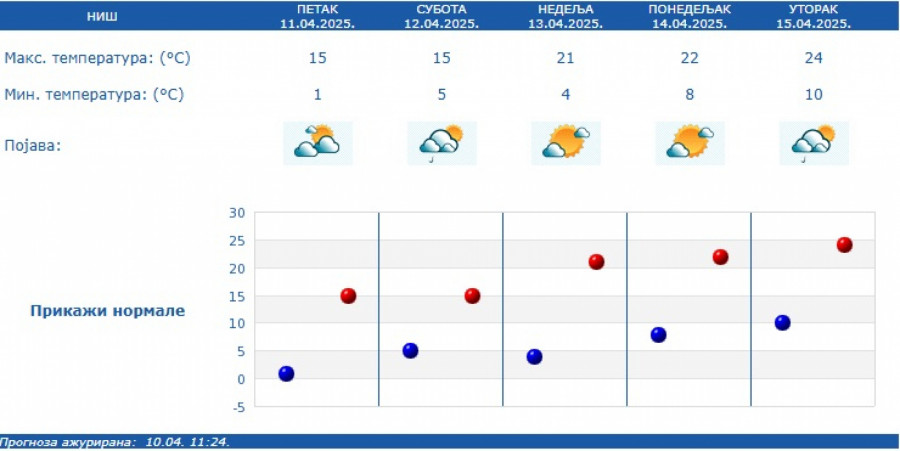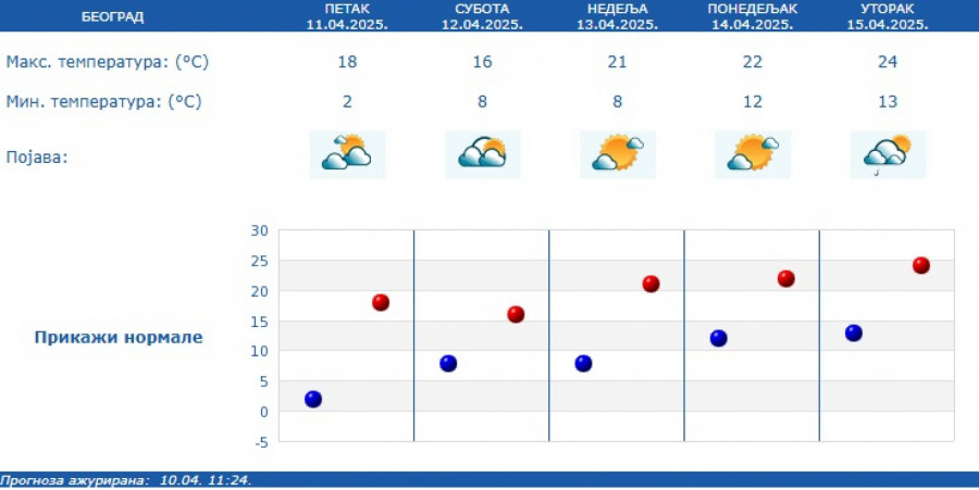 Zatim promenljivo, u utorak i četvrtak krajem dana sa kišom i pljuskovima.