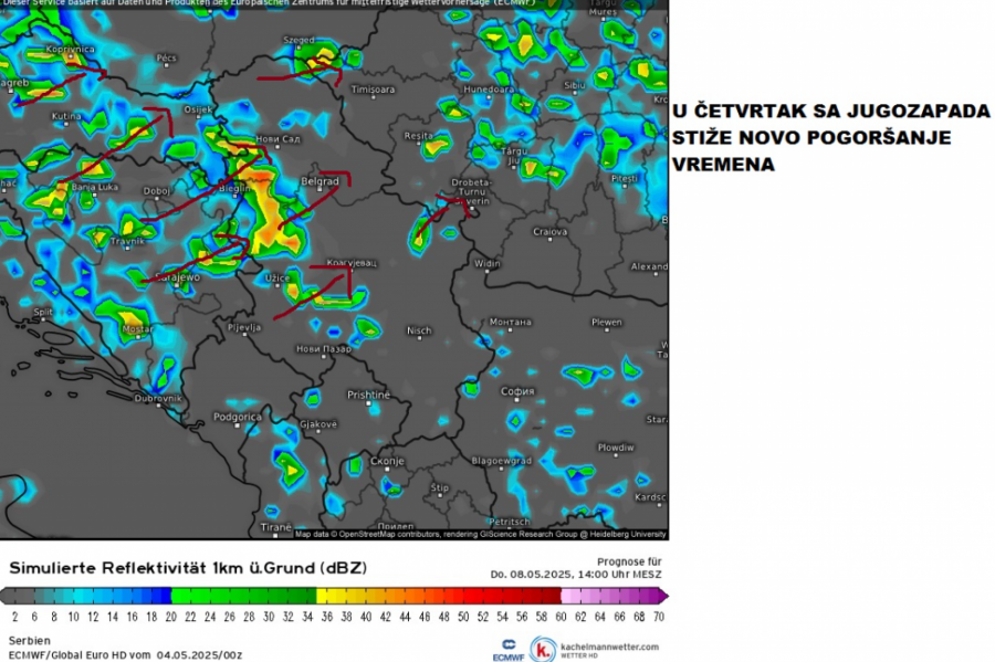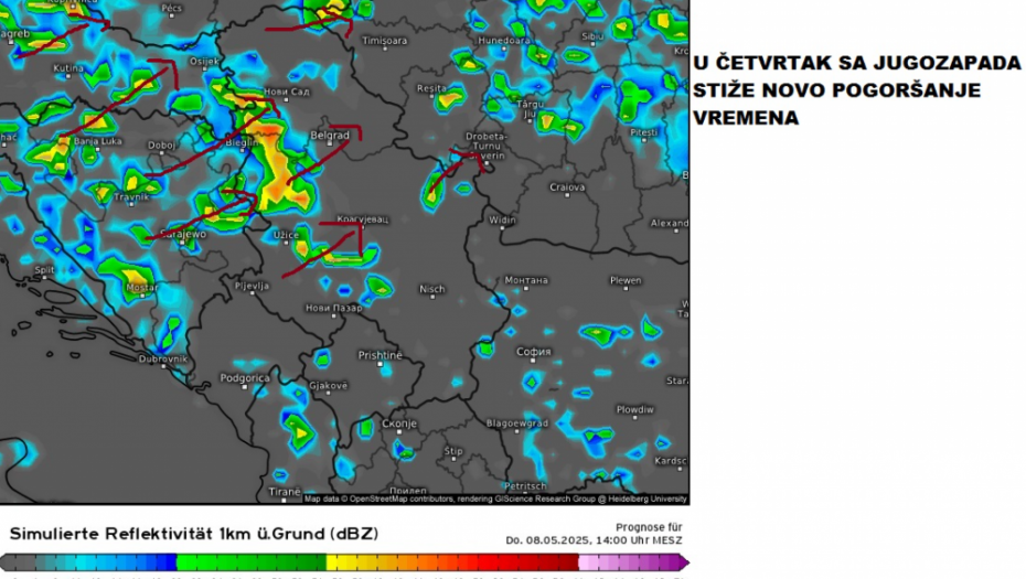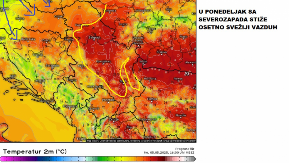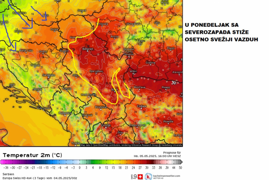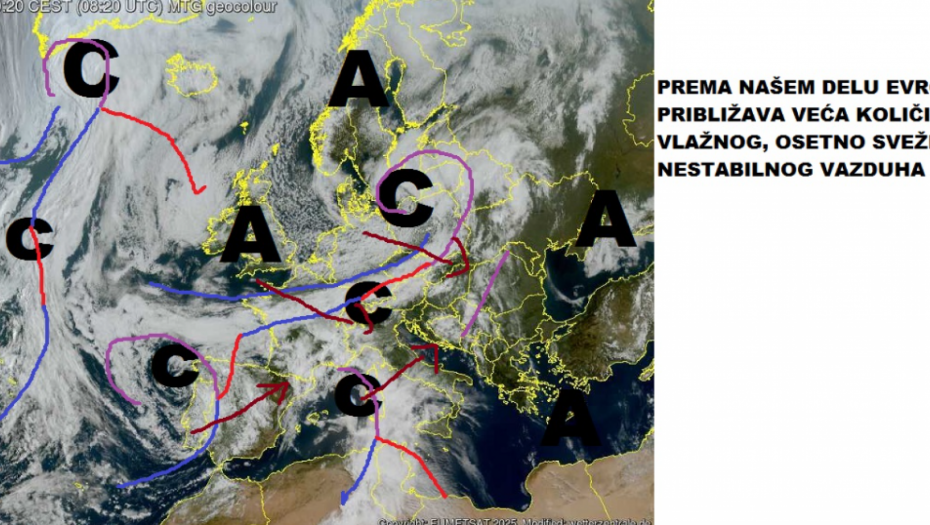 Kako navodi, od sutra sledi jača promena vremena, kiša, grmljavinski pljuskovi i jače osveženje. moguće su i lokalne nepogode.
