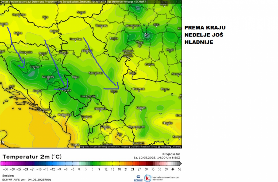 Postepen povratak tremperatura u okvire proseka ali i dalje uz česte nestabilnosti je moguć oko 18.05 - zaključuje Čubrilo.