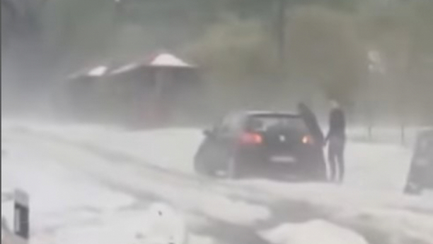 Apokaliptični snimak stiže iz Kragujevca, a na njemu se vidi kako se automobil probija kroz grad koji je napadao, pa se stiče utisak kao da je pao sneg.