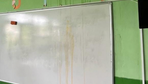 Na zidu učionice ostale su vidne fleke nakon ovog napada. Podsećamo, blokaderi foteljaši više puta su napadali građane upravo jajima, a ovaj nasilni trend se izgleda proširio i na maloletnike.