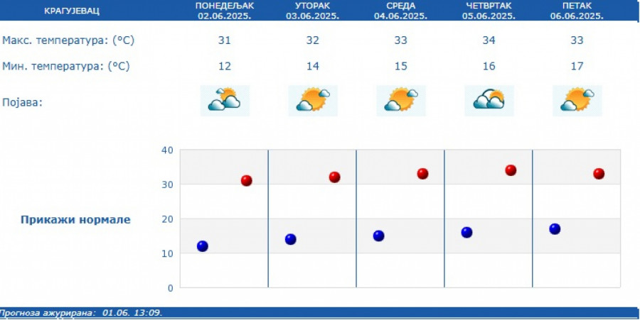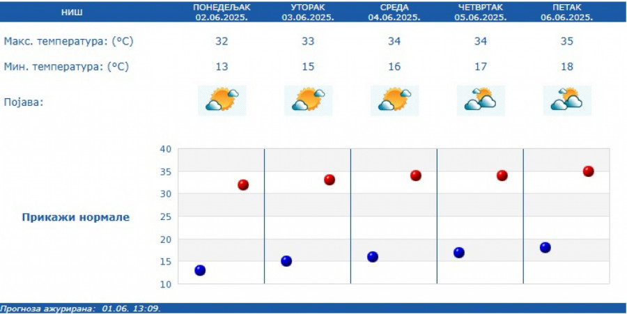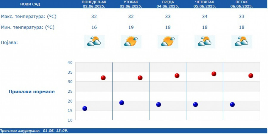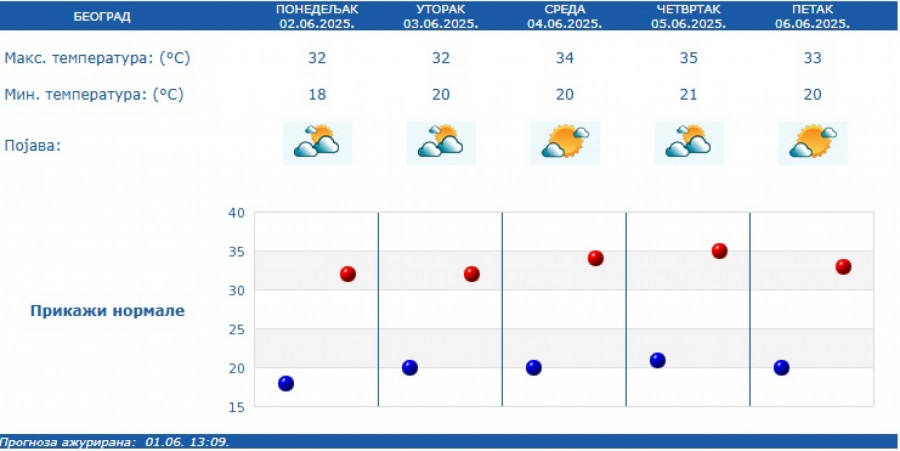 U prvoj dekadi juna prvi letnji toplotni talas - očekuje se pretežno sunčano vreme sa maksimalnim temperaturama od 32 do 36 stepeni.