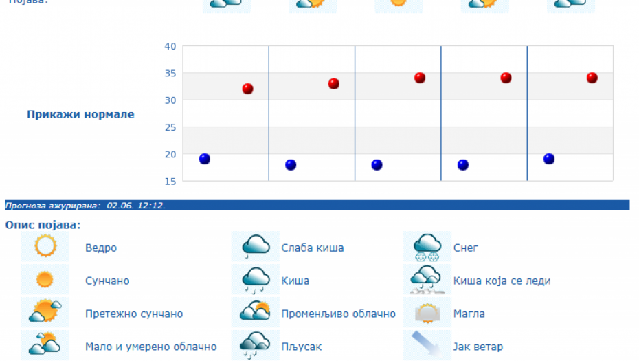 Navodi se i da se u prvoj dekadi juna očekuje prvi letnji toplotni talas sa maksimalnim temperaturama od 32 do 36 stepeni.