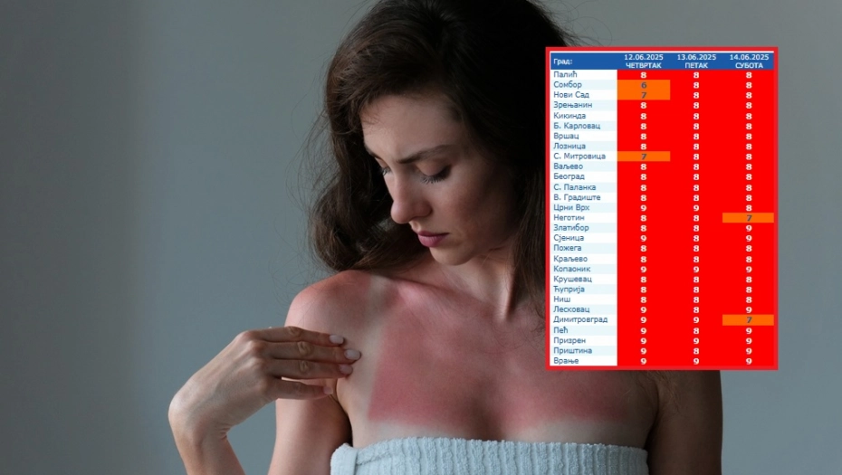 U svim gradovima Srbije osim u Somboru, Novom Sadu i Sremskoj Mitrovici. Inače, u svim gradovima vrednost UV indeksa je 8.