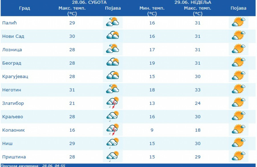 Temperature će se kretati od 14 do 33 stepena, saopštio je danas Republički hidrometeorološki zavod.