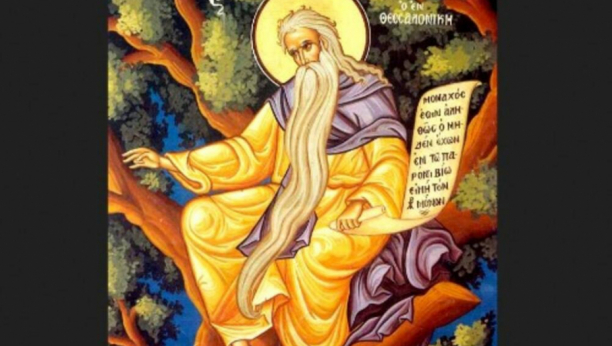 Blaženi otac rodio se na Istoku, a u toku mladosti napustio je svet, srodnike, prijatelje i sve bogatstvo i sa ljubavlju pošao za Gospodom. Silnim uzdržavanjem, on je pokorio telesne strasti i javio se kao neki anđeo u telu. Pored toga što ga je krasilo uzdržavanje, bio je još i veoma smirenouman. Čitajući Sveto pismo i žitija svetih muževa on se trudio da ih podražava, a osobito svetim stubovima. Nastanivši se blizu Soluna, on se popeo na jedno bademovo drvo sedeći bez ičega na njegovim granama.