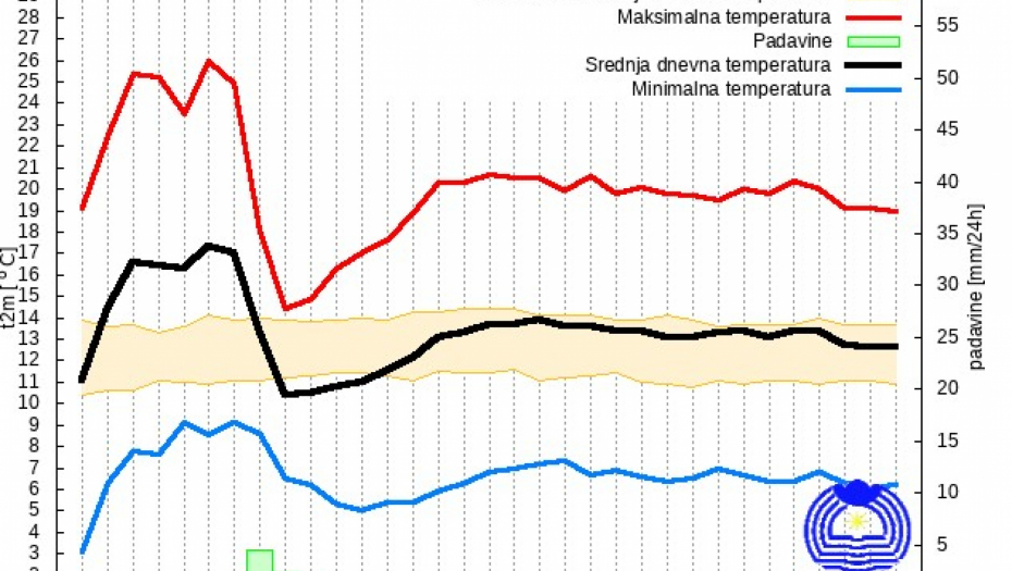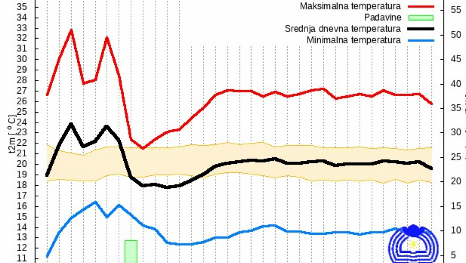Najniža jutarnja temperatura iznosila je od 15 do 23 stepena, a vetar duva slab do umeren, južnih smerova. Na severu Vojvodine i na Kosovu i Metohiji vetar je popodne pojačan, dok se u toku noći u Vojvodini očekuje skretanje vetra na severozapadni pravac.
