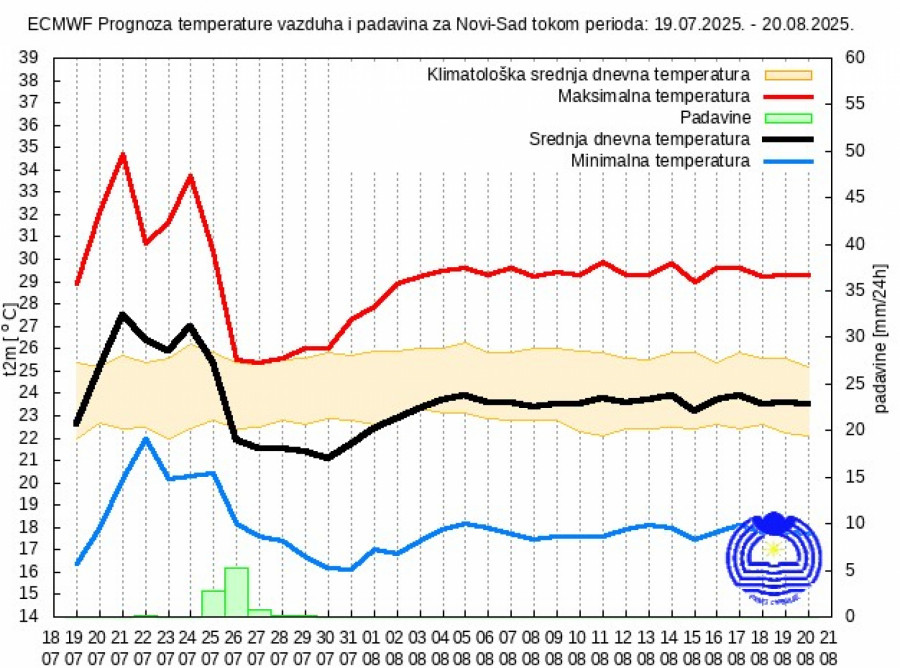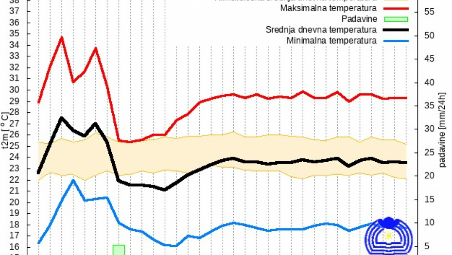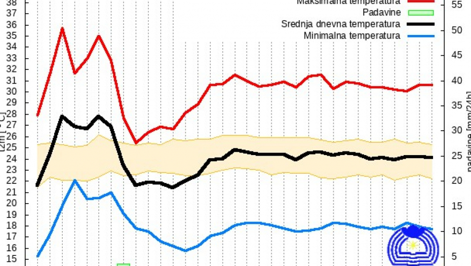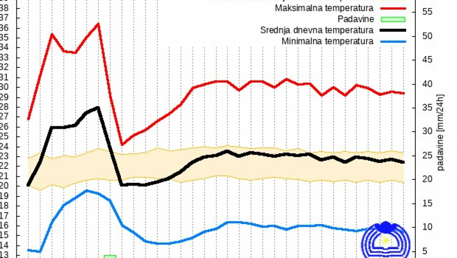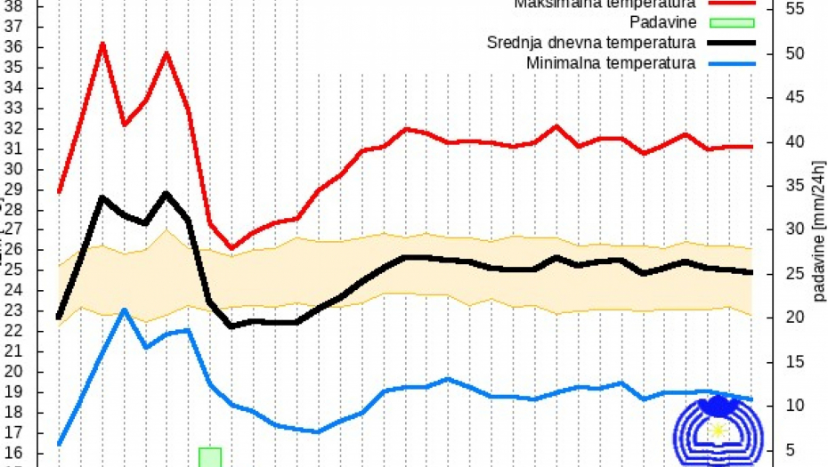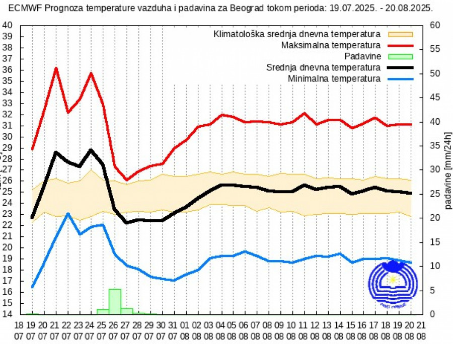 U Beogradu je takođe pretežno sunčano i veoma toplo, sa slabim do umerenim vetrom južnog pravca. Jutarnja temperatura bila je od 20 do 23 stepena, dok se maksimalna dnevna očekuje oko 38 stepeni Celzijusa.