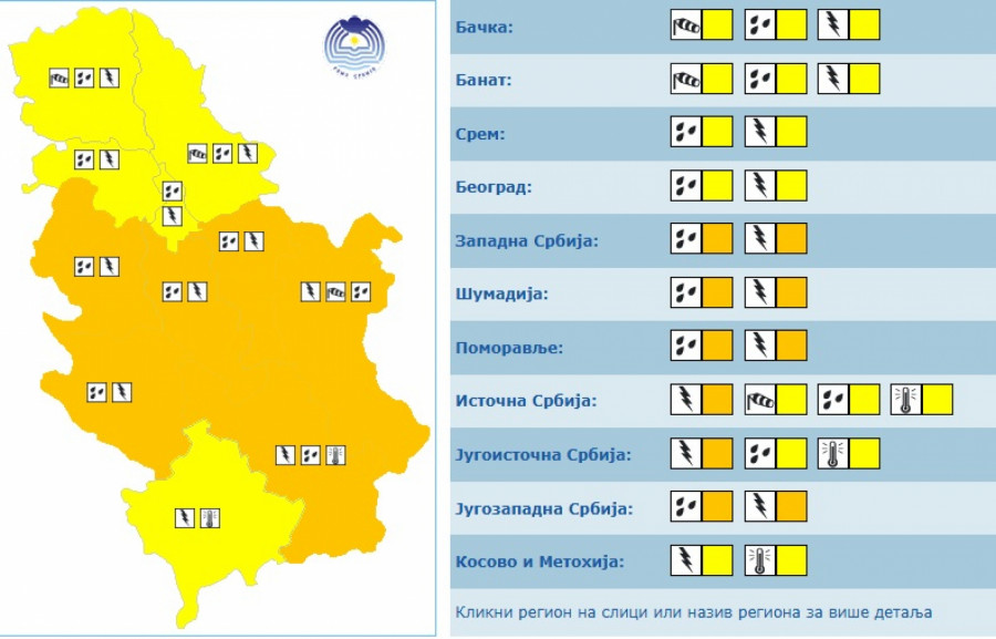 Za konkretne lokacije izdavaće se hitna upozorenja jedan do dva časa unapred, dodaje se.