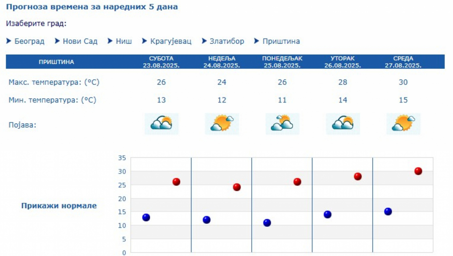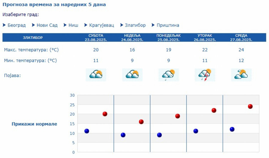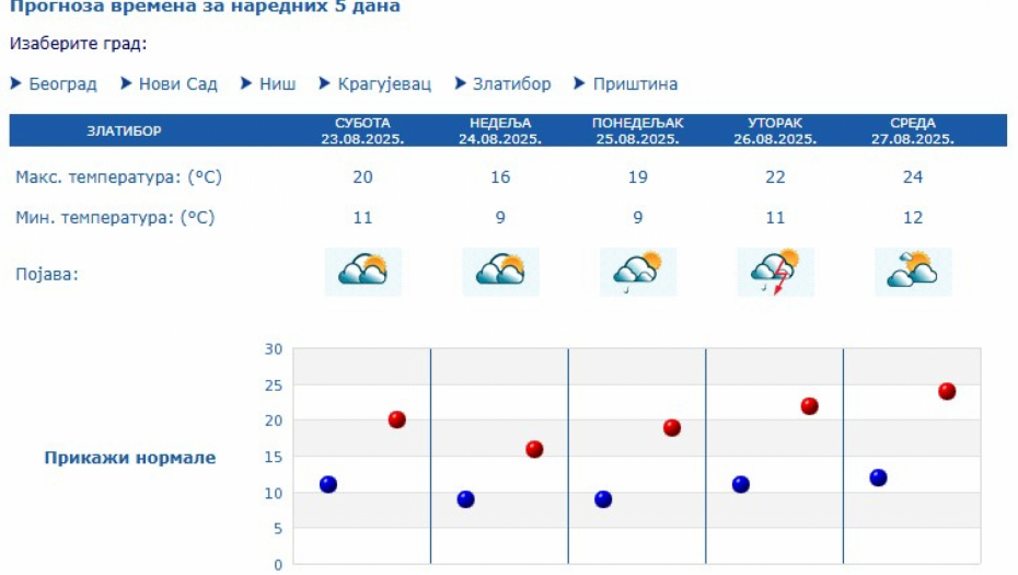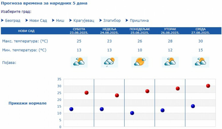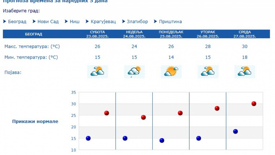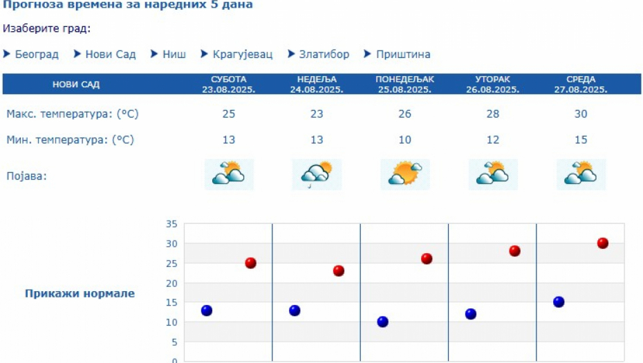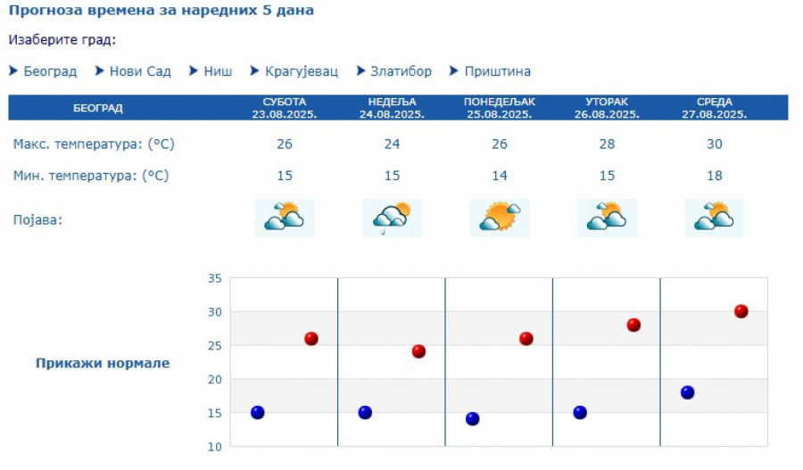 Prema prognozama, krajem sedmice (30. avgusta) i sever Srbije može očekivati kratkotrajne nestabilnosti.