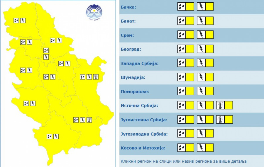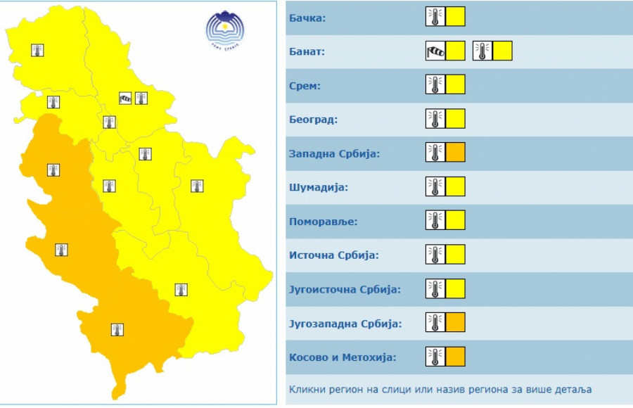 Beograd će takođe biti pod posebnim upozorenjem, sa dnevnim maksimumima do 36 stepeni i jakim jugoistočnim vetrom.