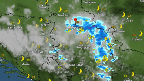 Tokom noći padavine će preći i preko centralne Srbije, pa dalje na istok, a oko 23 časa očekuje se i jači pljusak u Beogradu.