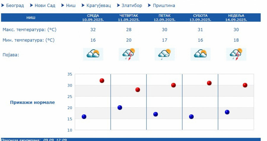 Najniža temperatura biće od 12 do 20 stepeni, a najviša dnevna od 28 na severozapadu do 33 stepena na jugoistoku.