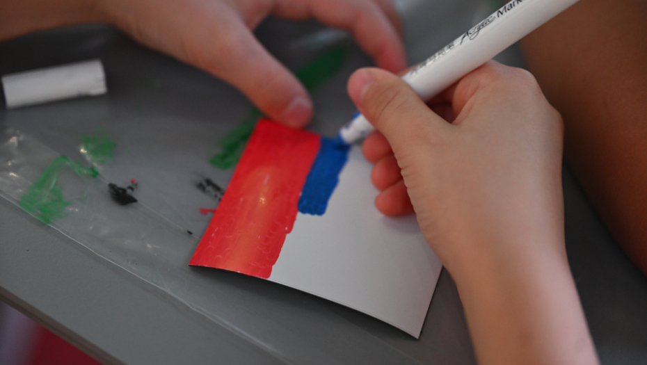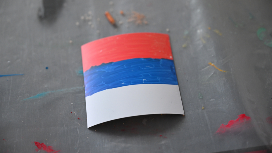 Mališani oslikali svoju zastavu u Ekspo 2027 Plejgraundu povodom Dana srpskog jedinstva, slobode i nacionalne zastave