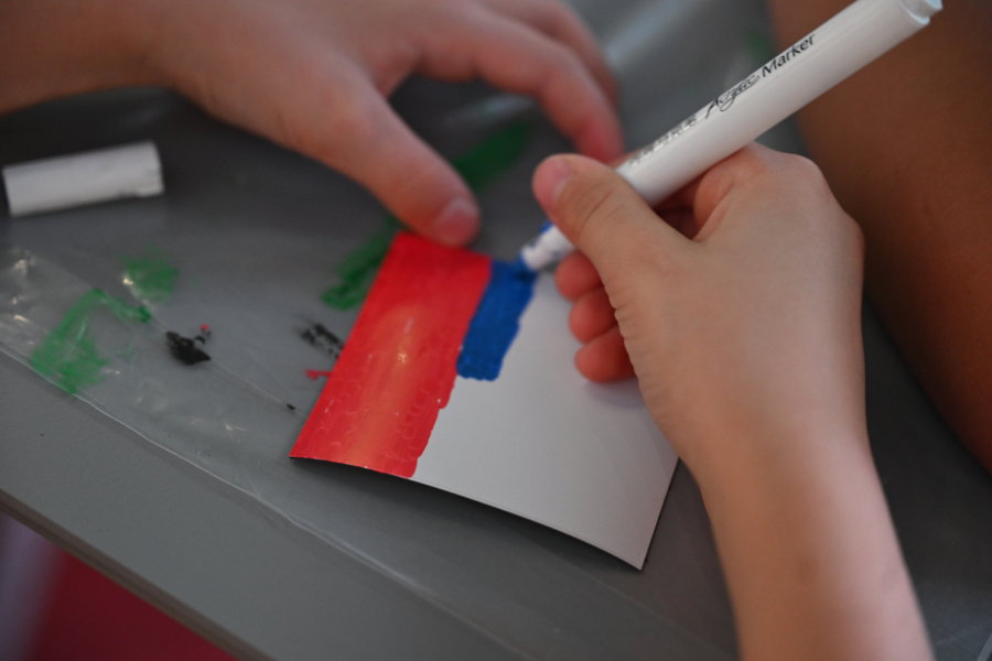 Učenici osnovnoškolskog uzrasta iz Beograda danas su, u okviru posebne likovne radionice posvećene Danu srpskog jedinstva, slobode i nacionalne zastave u Ekspo 2027 Plejgraundu, pokazali umetničke veštine oslikavajući svoju sopstvenu zastavu, čiji je izgled inspirisan igrom kao glavnom temom Ekspo 2027.