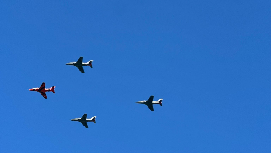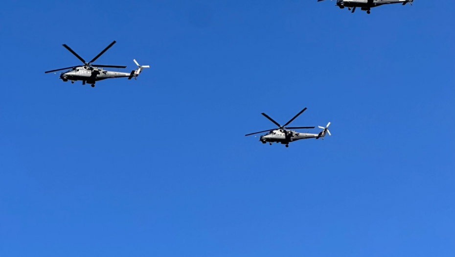 Helikopteri i MiG29 nadletali su danas iznad srpske prestonice, a takođe će i na vojnoj paradi.