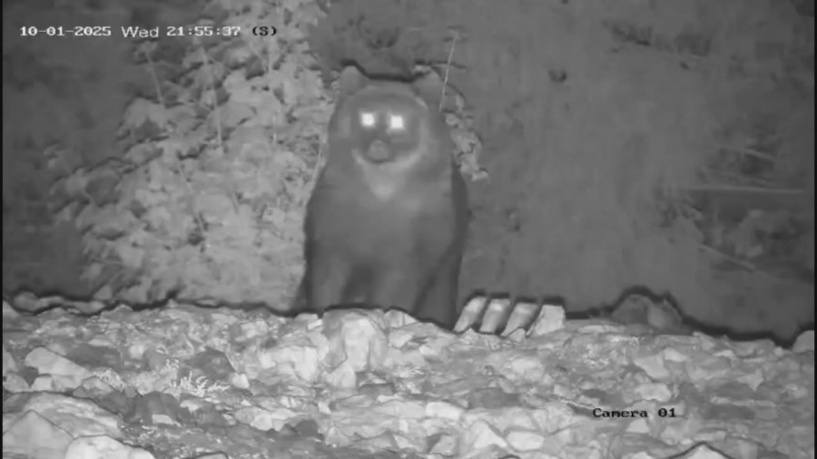 Sigurnosne kamere zabeležile su krupnom mrkog medveda koji je došao da se posluži, ali ljudi koji prate životinje na ovoj planini ranije ga nisu videli niti znaju odakle je stigao. Znajući činjenicu da se medvedi jako puno kreću i da dnevno mogu prepešačiti na desetine kilometara, mogao je stići šumskom stazom sa svih strana.