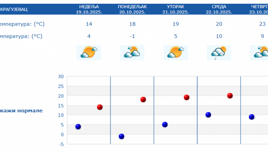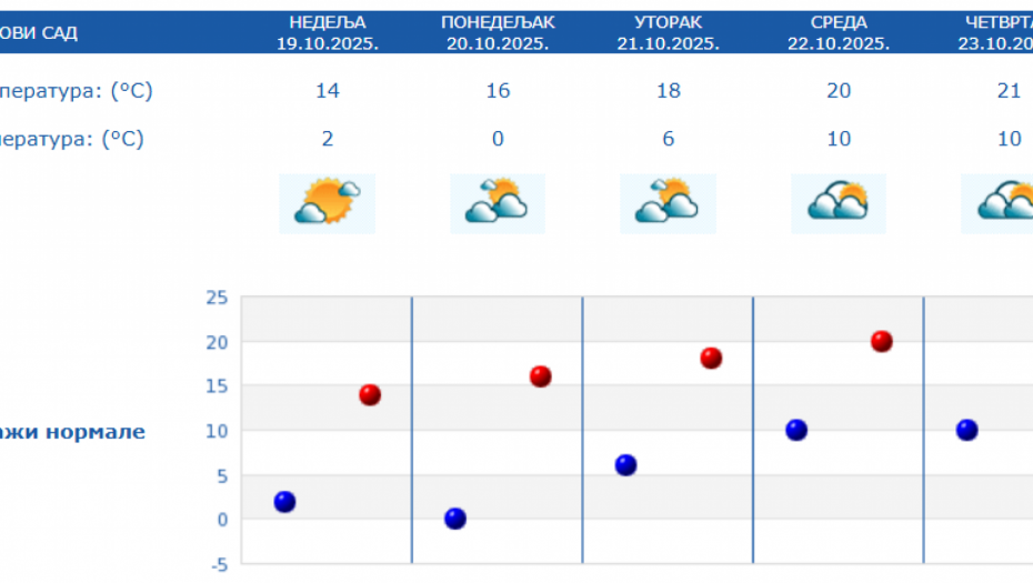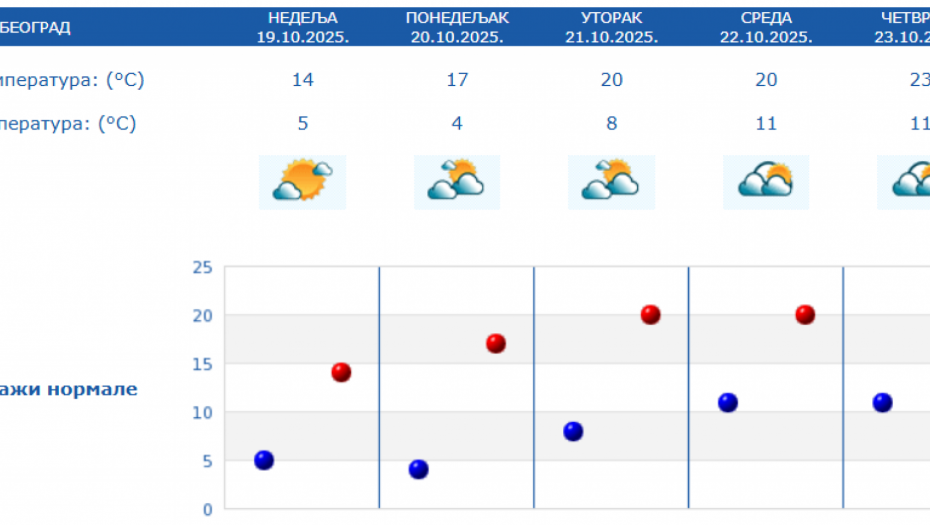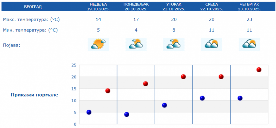 U Beogradu će nakon hladnog jutra biti pretežno sunčano tokom dana, sa slabim do umerenim severozapadnim vetrom. Najniža temperatura biće oko 5 stepeni, a najviša dnevna oko 14.